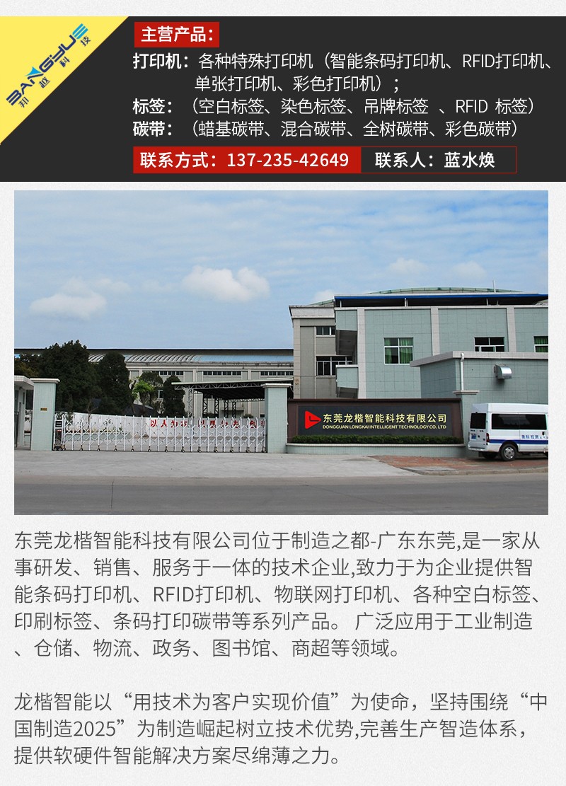 1.節省空間、低功耗。 2.外觀緊湊美觀,小巧輕便,可隨時隨地使用。 3.可獨立工作,脫開電腦和軟件的控制,編輯打印可在幾秒內完成。 4.外部接口豐富,應用廣泛。如:自動化流水線、手機制作行業、物流行業、應用終端行業、制衣行業等等。